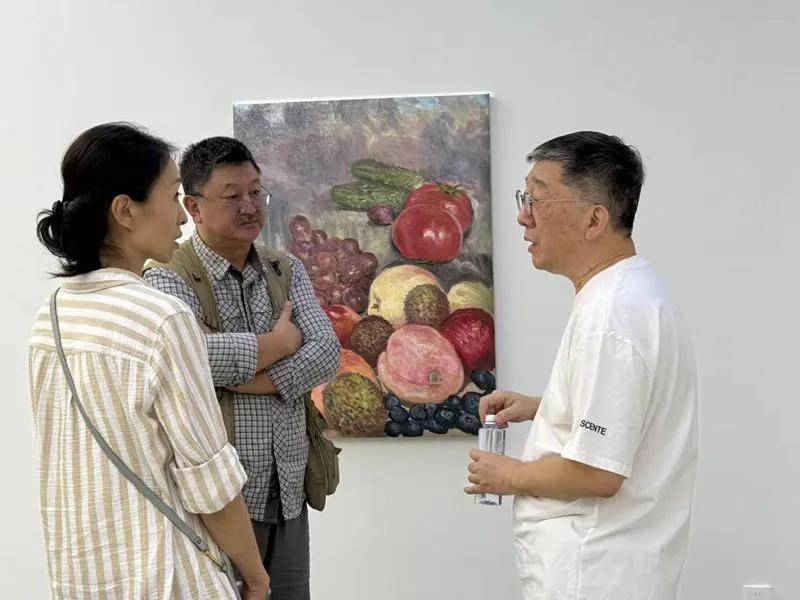 艺术评论家鲍栋专为倪军的这次展览撰文。他写道:“一方面,他画花鸟虫鱼、瓜果桃梨,像一个文人。日常生活里的事物,不管是丰盛的还是雅致的,在倪军这里都几乎即刻入画。扳开的西瓜、切开的三文鱼,随意堆放的海鲜与水果,他用一种草草的逸笔来描绘这种逸志,尤其是在最近直接写生鱼缸金鱼的作品中,虚薄的颜料与快速的笔触,充满着中国传统文人画的气息与神采,又带着印象主义风格的概括与直接。