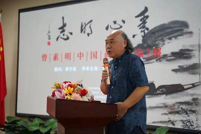 此次展览由中国国家画院研究员、大写意花鸟画领军人物邢少臣先生任顾问,由中国国家画院理论研究所所长、博士生导师、《中国美术报》总编陈明先生任学术主持并撰写《前言》,由中国国家画院艺术家盛鸣先生策展并主持。共展出曾素明近年来创作的几十幅中国画精品力作,作品形式丰富多样,有的气势磅礴,有的充满了情趣,有的充满了禅意。