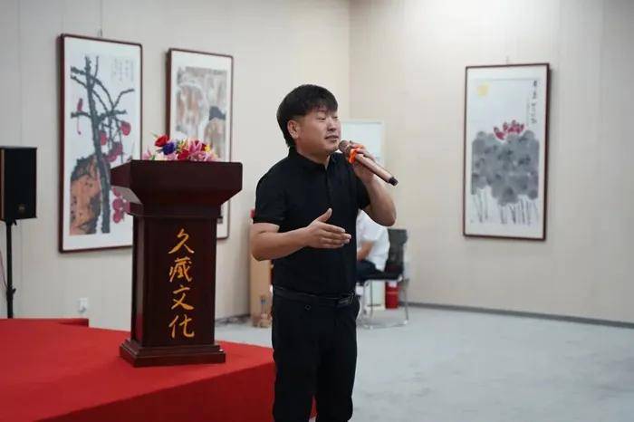 在开幕式现场,众多政、军、商和艺术界人士齐聚一堂。曾素明的恩师邢少臣先生在致辞中高度评价了曾素明的人品和艺术:“曾素明为人很真诚,极其聪明、睿智,而且特别勤奋努力。放下枪杆子拿起笔杆子,曾素明在部队的长期历练,造就了他的大格局和胆气,所以画‘大写意’上手快。充分发挥自身传统文化涵养深厚的优势,善于思考和归纳总结,能在很短的时间内掌握‘大写意’要义,学习能力极强,而且能举一反三,已有较深的笔墨功底和独特的艺术视角,在传统与现代之间找到了完美的平衡点。他的作品不仅展现了大写意的独特魅力,更传递出对生活、对自然的热爱与感悟。”