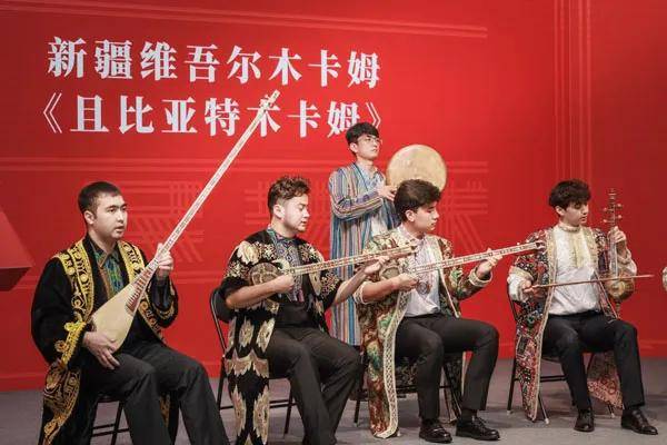 开幕式前,现场特别呈现了被列入联合国教科文组织“人类口头与非物质文化遗产代表作名录”项目的新疆维吾尔木卡姆和南音的代表性曲目——《且比亚特木卡姆》和《望明月》。