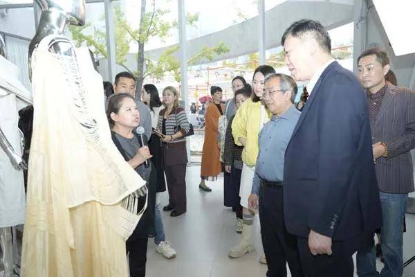 本次活动策展人、清华大学美术学院副院长李迎军为现场嘉宾和观众进行导览。在场设计师分享了使用柯桥面料创作的心得。