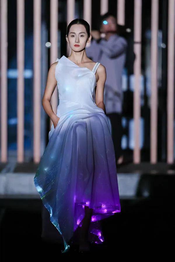 11月6日19:30,“兰亭序曲——李薇时装秀”于鲁镇大剧院正式上演。在烟雨江南的意境里,清华美院教授李薇完成了一场跨越时空的文化表达。她以柯桥面料为创作原点,融合柔性编织科技与传统染织工艺,将灵感溯源至绍兴独特的文化基因——王羲之“天下第一行书”《兰亭集序》。秀场上,光影交织,音乐流淌,“飘若浮云,矫若惊龙”的笔墨神韵,化为衣袂间灵动的造型与韵律。织物在模特行进间仿佛被赋予呼吸,于动与静之中,勾勒出深邃流动的视觉诗篇。整场演出以极具艺术感染力的感官叙事,沉静而有力地诠释了当代时尚前沿的无限可能。