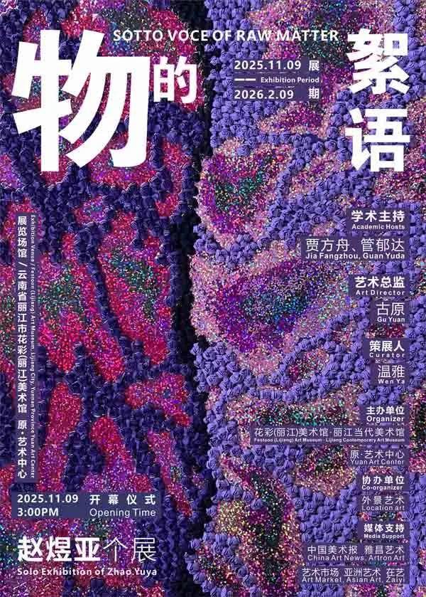 2025年11月9日下午,赵煜亚个展“物的絮语”在云南省丽江市花彩(丽江)美术馆、原·艺术中心拉开帷幕。