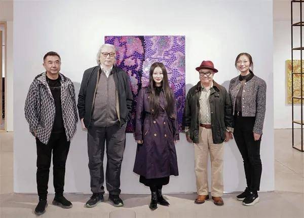 嘉宾合影左起:花彩(丽江)美术馆馆长古原,批评家贾方舟,艺术家赵煜亚,批评家管郁达,策展人温雅