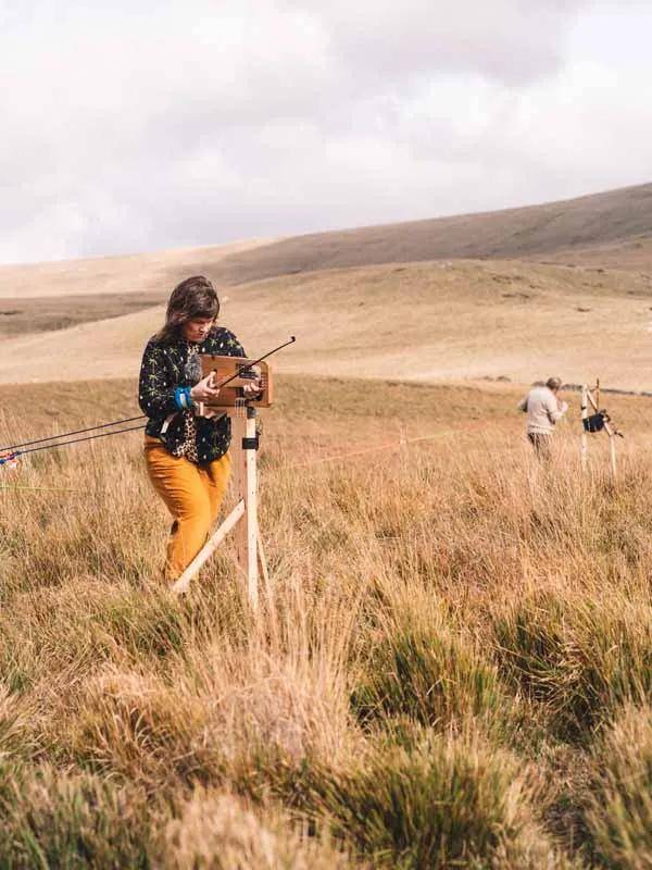 加藤翼(Tsubasa Kato)邀请了四位威尔士音乐家,以竖琴(harp)、克鲁斯琴(crwth)、威尔士铃鼓(tabwrdd)和威尔士号管(pibgorn)等传统乐器演奏威尔士国歌。这场表演以威尔士的传奇巨石——Maen Llia 为中心,在山地景观中以场域特定的方式完成。当这些演奏者以绳索相互连接、并保持预设的距离时,个体的动作便会在彼此之间产生张力——这种张力会直接干扰他们对乐器的演奏。被绳索连接与牵制的身体,使得平常的音乐演奏转化为一种陌生的身体表达。每一位表演者的意图动作——吹奏、拨弦或击打准确的节拍——都有可能被他人的动作所限制,同时又无意间成为他人的障碍。威尔士号管的刺耳嘹亮、里拉琴的粗粝振动、竖琴的清澈音色与歌者天籁般的嗓音,努力汇聚成那首熟悉的国歌旋律《父辈的土地》(Hen Wlad Fy Nhadau)。然而,在表演的机制中,这首歌被打断、分裂、压抑与扭曲——却依然在精神上保持统一,并被他们的集体力量所升华。