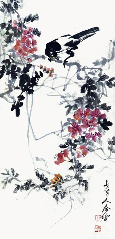 赵合俦(1902-1982),湖北黄冈人。精通绘画,工花鸟,擅绘八哥,有“赵八哥”之称。其作品在广泛吸收清代大家华新罗、八大、任伯年等人的基础上,又能跳出传统,自创新意。