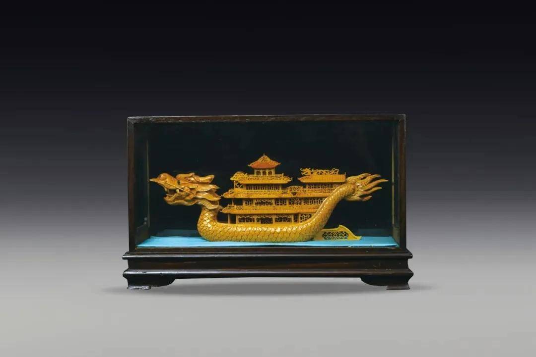 杂件方面可圈可点,如湖北省工艺美术大师马健的系列绿松石雕件,运用天然绿松石材质,雕刻多样主题,工艺精湛;龙从发是国家级非物质文化遗产项目武汉木雕船模的代表性传承人,中国工艺美术大师,以制作龙舟著称,代表作多件作品被人民大会堂、中国军事博物馆、嘉兴船文化博物馆等机构收藏,此件作品《龙舟》古朴典雅,雄浑大气,为其精力之作。