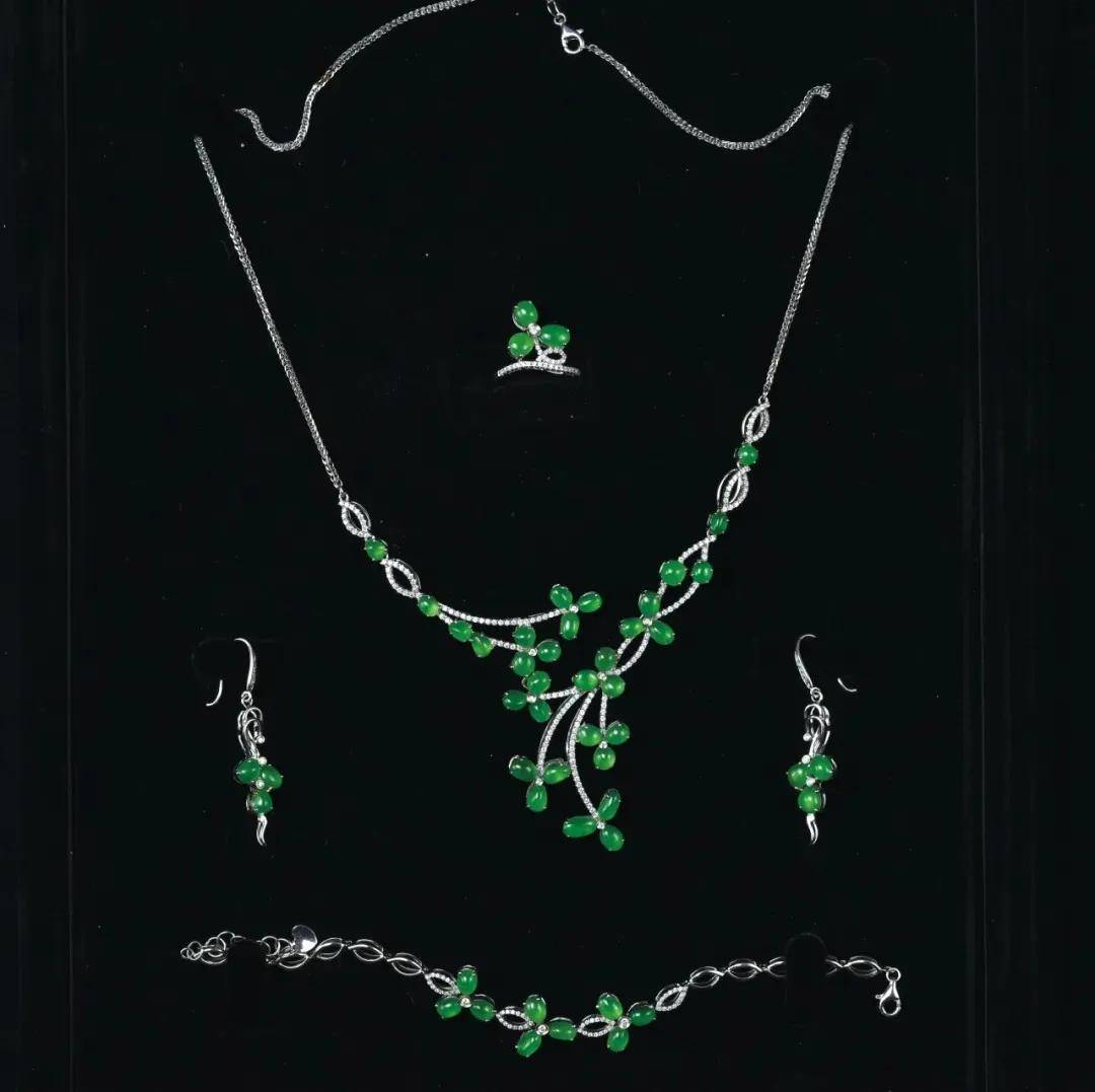 现代 白金嵌冰种阳绿翡翠饰件(四件套)