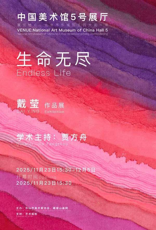 “生命无尽——戴莹作品展”于2025年11月23日在中国美术馆盛大开幕,由中国著名艺术批评家贾方舟先生担任学术主持。本次展览聚焦艺术家戴莹近十年(2015-2025)创作脉络,汇聚29件架上绘画与装置,其中十米长幅巨制将再度亮相,以其恢弘尺幅引领观者步入一场关于生命与能量的精神旅途。
