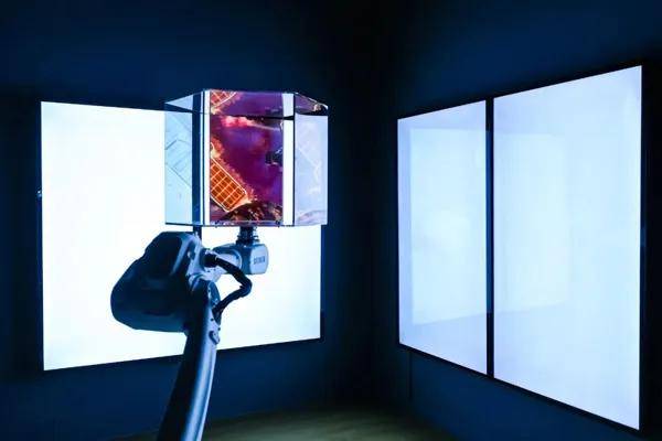 天津美术学院院长 邱志杰先生在采访中表达了对展览动线安排的赞赏。不同于以往科技艺术展常见的“黑空间接黑空间”,“无尽的重启”以明亮的中庭与玻璃阳光房串联展区,带来开阔与通透的视觉体验。陈抱阳的艺术家与教师双重身份,是社会实践与学术研究并行的结构,能为学生注入更多活力,将前沿资讯与真实项目经验直接带入课堂,推动新一代在科技与艺术的交汇处成长与创新。最后,他表示在科技园区建设美术馆,让科技工作者与艺术家彼此靠近、相互滋养,这一跨界融合的理想如今壹美已率先实现,希望美术馆在这个方向坚持做下去。