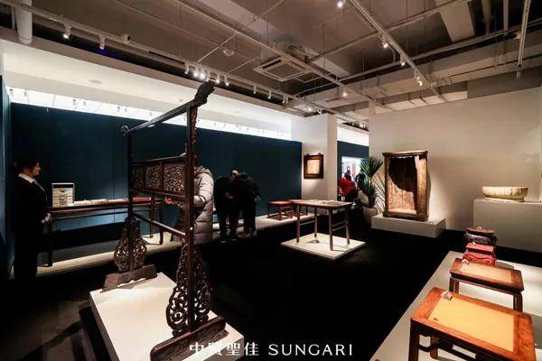 现场的精彩远不止于此,展厅本身就还原了中国传统文人的诗意栖居空间——长逾2米的明末清初黄花梨独板面如意纹翘头案、清康熙黄花梨云龙纹衣架默默伫立,材质、纹路本身的韵味加上岁月赋予的“滤镜”,让生活在繁忙都市的人在触摸到它们的瞬间,就能收获心灵的片刻宁静。