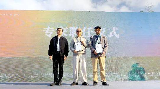 永安市上坪乡党委书记张斌为上坪乡艺术文化建设首席专家许正龙、特聘专家孙迪颁发聘书