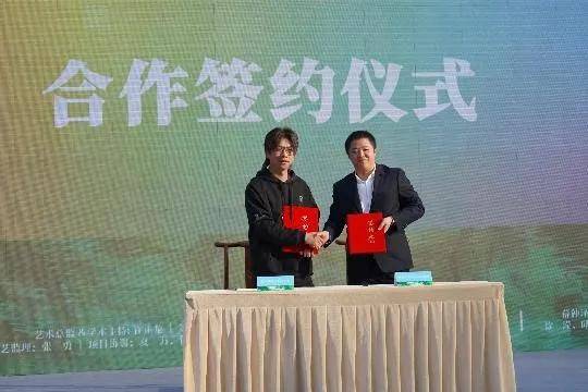 永安市上坪乡党委副书记、乡长赖炜与中式物语艺术工作室负责人刘烽进行艺术合作签约