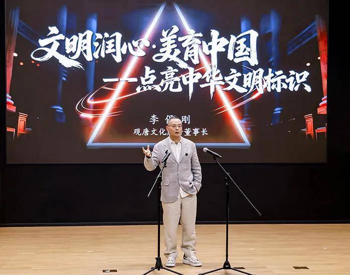 “让传统文化‘活起来’,让文明标识‘亮起来’!”作为资深的艺术产业园区运营者、艺术管理一线工作者,观唐文化董事长李保刚从产业实践视角,为学科使命注入了文明厚度,并以激情昂扬的演讲分享了《文明润心、美育中国——点亮中华文明标识》的思考。他提出在后工业化与数字化时代,应从黄河、长城、都江堰等文化地标中提炼“中华文明标识”,以“内容为核、创意为翼、品牌为魂、场景为媒”让传统文化活起来。李保刚董事长旁征博引,通过一系列中西文化与美学案例的分享,总结出以内容为核心、创意与品牌协同推进的发展路径,并阐释了艺术管理如何在城市更新与文化消费中发挥桥梁作用,为学科的产业实践提供了生动脚注。