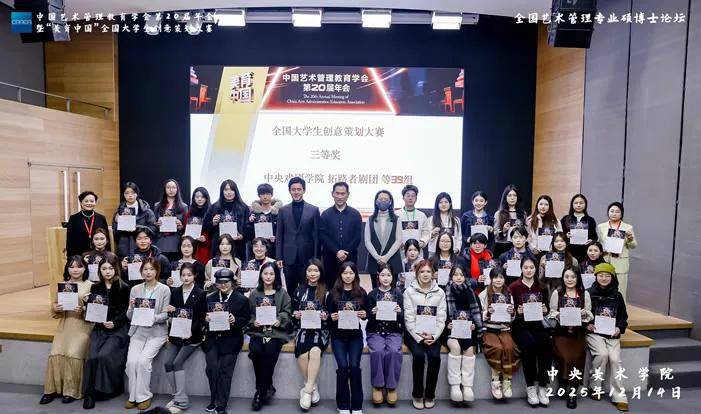 2025年12月13日至14日,中国艺术管理教育学会第20届年会在京召开。本次年会由中国艺术管理教育学会主办,中央美术学院艺术管理与教育学院、中央戏剧学院实验剧团、北京舞蹈学院人文学院、 中国人民大学艺术学院、广州美术学院艺术与人文学院等多院校联合承办。年会由13日在北京观唐国际艺术区举办的全国艺术管理专业硕博士论坛、全国大学生创意策划大赛与14日在中央美术学院举办的主旨发言、圆桌论坛及颁奖典礼构成,汇聚全国八十余所院校的专家学者、业界代表及青年学子,围绕“美育赋能、跨界融合、科技创新”等议题,共同探讨了中国式现代化背景下艺术管理教育的使命与未来。