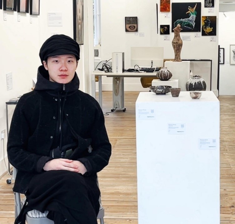 在 Boomer Gallery,他的《Ethereal 妙云》和《Pure Land净土》呈现了另一种形式上的张力。相比周围节奏快速的平面与装置作品,它们显得沉稳、安静,却不会被忽略。火痕与灰釉形成的肌理,使作品本身像是一段被时间刻录的“存在剖面”。策展团队评价:“这两个陶瓷作品拒绝速度的快慢,拒绝即时性,这是