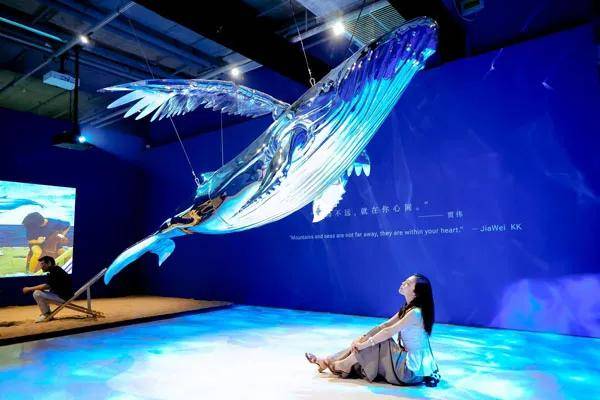 2025年,贾伟在北京时代美术馆举办的大型个展《如花山海》,成为其艺术生涯的重要里程碑。展览融合AI数字艺术、绘画、雕塑、装置、影像与科技互动等多重形态,打造出全沉浸式“心灵治愈剧场”。