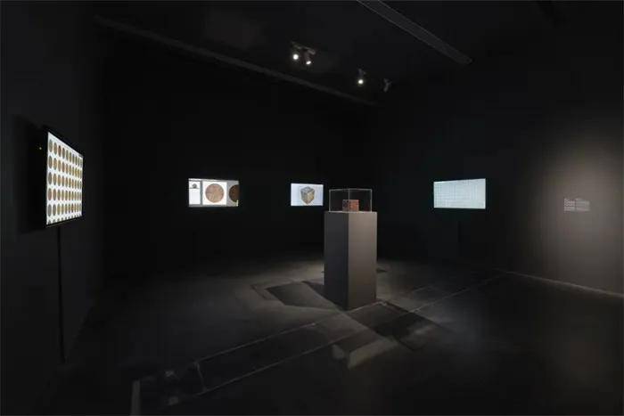 与《我们收购白色专辑》相似,《美分》(2017-2024)亦基于批量生产、看似别无二致的现成品创作,由一万枚1982年以前铸造、因含铜量而具有更高物质价值的美国1美分硬币构成。张能傑拍摄了自己收藏的每一枚硬币的照片,记录其独特的磨损与斑驳,然后将这批硬币熔铸成一块31公斤的铜立方体。原始硬币的图像亦以数字化方式铭刻于比特币区块链上,从而将实体货币的数字影像与虚拟价值体系进行了关联。艺术家以观念性的探索引发我们对时间、永恒以及物质价值评估方式演变的思考。观众可通过触摸屏设备或书籍浏览这一收藏,观察数十年流通在每枚硬币上留下的细微磨损与斑驳。随着实体美分硬币逐渐退出流通(美国铸币局已于2025年11月永久停产该硬币),这块沉甸甸的铜立方体以其可触知的坚实存在宣示价值的物质性,这一项目亦成为献给曾经广泛流通的硬币及其所代表的经济转型的多媒介纪念碑。