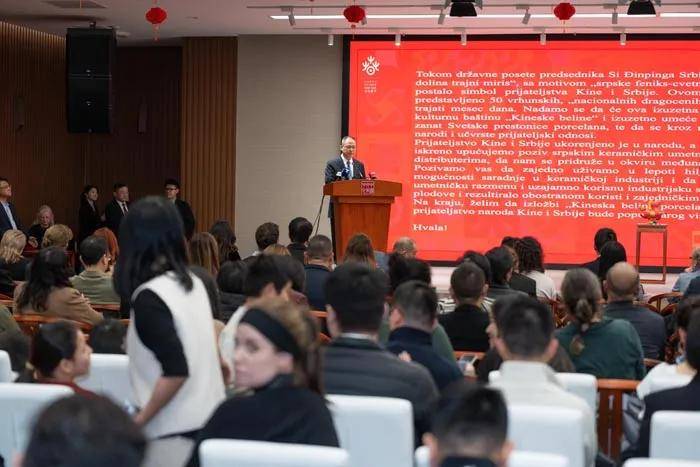 2026年1月30日,“中国白·德化瓷”国际巡展在塞尔维亚贝尔格莱德市的贝尔格莱德文化中心开幕。展览由中国驻塞尔维亚大使馆、塞尔维亚文化部指导,贝尔格莱德中国文化中心、贝尔格莱德一带一路研究所联合主办,中国国际文化中心、德化县人民政府承办。开幕式现场,塞尔维亚国民议会副议长玛丽娜·拉古什,贝尔格莱德国家剧院院长德拉戈柳布·巴伊奇,贝尔格莱德一带一路研究所所长博扬·拉里奇,中国驻塞尔维亚大使馆李明大使,中国驻塞尔维亚使馆张喆公参,塞尔维亚中资企业商会会长杨栋,塞尔维亚华人华侨商业总会会长金东荣,德化县副县长林亮国等领导出席开幕式,中塞两国文化、艺术与博物馆界的百余名嘉宾齐聚,共同见证这一历史性时刻。