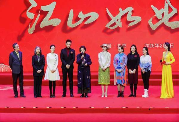 盛会现场,艺韵飞扬、百花齐放。著名艺术家关牧村一曲《打起手鼓唱起歌》点燃全场热情,赢得观众阵阵欢呼;梦鸽、张华敏、张晖等歌唱家倾情献唱,多首经典曲目余音绕梁,让现场沉浸在温馨祥和的新春氛围中;书画春晚艺术总监张洛慈登台演唱《中国画 中国美》,歌声里饱含着中华儿女的文化自豪与坚定信念,将晚会氛围推向高潮。文脉相牵,艺苑相融。著名电影制片人梅子携电影《情缘曹雪芹》创作团队,与87版电视剧《红楼梦》主创团队共同亮相书画春晚,以文化为媒,让曹雪芹笔下的红楼雅韵与影视艺术之美交相辉映,为传统书画艺术注入别样的文化内涵。