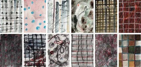 絮菲过往的工作背景以及专业研究启发她从“装饰”的角度反思艺术本身,尝试在两者之间搭桥。她在近些年间集中创作了一系列以纺织品纹样为题材的作品(图1-图6,图10),可作为参考。其中,冰梅做为艺术家偏爱的主题之一,在坦培拉架上绘画(图6)与纸本作品(上图)、甚至是她的篆刻作品中都能见其身影。不只是她,《园冶》的作者计成对于铺地冰裂纹情有独钟,它们在触发文人山水情怀的同时,消解了冰裂纹在门窗雕花等载体中具有的强烈装饰意味,还原到最为自然和淳朴的状态。以园林铺地形式为例,通过用鹅卵石模仿动植物图案的做法,相比较碎石碎砖铺设的冰裂纹,前者显得装饰性更强,后者则注重人工设计与自然纹理的契合,更加符合山居的生成理式。
