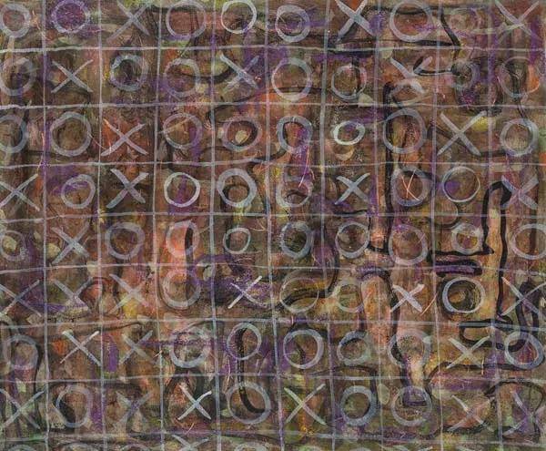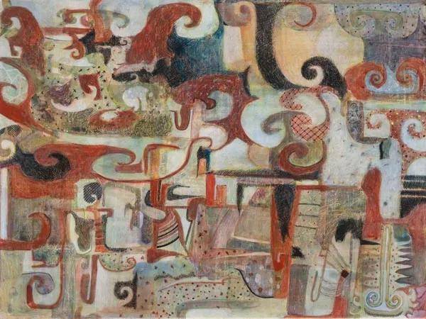 也许,艺术的本质就是游戏。它可以是对一个元素的无限发散,如房子系列(上图·),也可以是跟从内心的自由。玉琥2号(图12)中的玉琥已全然不见踪迹,亦或是遮藏于堆叠的笔触之下,白色的几何图形俨然是随性游戏而为之。对于大多现代人来说,历史的价值在于它的可消费性和可玩性。我们无从得知古人将自然抽象成几何图案的真实理由,而其中玩味与敬畏并行,又何尝不是一种游戏?