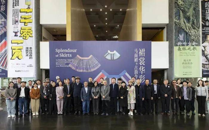 金秋之际,“裙裳华彩:马面裙的古韵今风”展览开幕式于2025年10月11日在清华大学艺术博物馆举行。清华大学文科资深教授、清华大学艺术博物馆馆长鲁晓波,清华大学美术学院党委书记覃川,策展人、清华大学艺术博物馆典藏部馆员高文静,策展人、清华大学美术学院染服系副教授贾玺增,山东博物馆党委书记、馆长刘延常,北京服装学院民族服饰博物馆馆长田辉,捐赠人代表陈菲先后致辞。开幕式上,鲁晓波为陈菲女士颁发捐赠证书,感谢她和刘海珍女士为清华艺博捐赠“民国红色暗花绸地绣一路连科纹鱼鳞马面裙”和“清晚期红色暗花绸地牡丹蝴蝶纹盘金绣鱼鳞马面裙”。开幕式由清华大学艺术博物馆副馆长段江飞主持。清华大学部分师生校友、艺术界代表、文博界代表、媒体记者、社会观众等出席了开幕式。