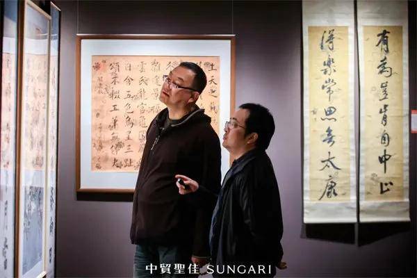 本次书画专场迎来了专业学术力量加持,中贸圣佳书画部资深专家李瑞华陪同曹学会会长胡德平等学者到场观展,众人围绕拍品的传承脉络、艺术价值展开深度交流,为专场的藏品价值解读提供了专业视角。