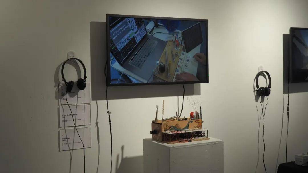 本次展览也呈现了艺术家设计的一个系列新数字乐器Sonibaux。这些乐器以装置形式展出,并配合视频介绍其不同的使用方式与适用场景。观众可以在影像中看到它们如何回应动作、空间或声音逻辑,从而理解这些工具在创作中的作用与潜力。在此过程中,这些乐器所提供的“可供性”—即它们所指向的可能操作方式与感知路径—也被清晰地揭示出来,让作品的跨媒介结构中多了一层对“声音如何被生成”的观察与思考。