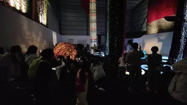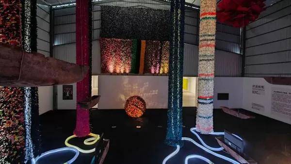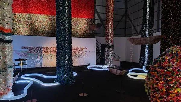 展览现场,观众穿行于花彩、雕塑与影像构筑的秘境中,感受着艺术家从泸沽湖带回的灵感印记。