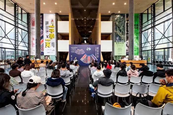 金秋之际,“裙裳华彩:马面裙的古韵今风”展览开幕式于2025年10月11日在清华大学艺术博物馆举行。清华大学文科资深教授、清华大学艺术博物馆馆长鲁晓波,清华大学美术学院党委书记覃川,策展人、清华大学艺术博物馆典藏部馆员高文静,策展人、清华大学美术学院染服系副教授贾玺增,山东博物馆党委书记、馆长刘延常,北京服装学院民族服饰博物馆馆长田辉,捐赠人代表陈菲先后致辞。开幕式上,鲁晓波为陈菲女士颁发捐赠证书,感谢她和刘海珍女士为清华艺博捐赠“民国红色暗花绸地绣一路连科纹鱼鳞马面裙”和“清晚期红色暗花绸地牡丹蝴蝶纹盘金绣鱼鳞马面裙”。开幕式由清华大学艺术博物馆副馆长段江飞主持。清华大学部分师生校友、艺术界代表、文博界代表、媒体记者、社会观众等出席了开幕式。