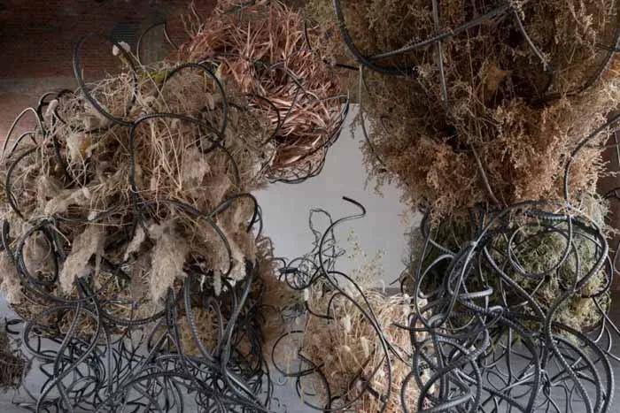 杨心广,“勇士”系列局部,植物、钢筋、水性封闭漆,2023。图片由艺术家和北京公社提供。