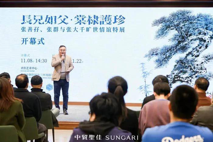 汪毅先生在致辞中表示,虽已立冬,但在展览现场中,观众能感受到兄弟般的情谊和温暖。他指出,此次展览的特色在于展现了张善孖、张大千和张群的兄弟情谊。张善孖和张大千是同宗同胞兄弟,张群与他们则是异父异母的同胞兄弟。在张善孖100年纪念展时,张群为展览撰写序言,张大千则称张群为“岳军吾兄”、“岳军老乡长”、“岳军老长兄”,视之为兄。这种特别的张氏兄弟情谊构成了展览的重要特点,类似的展览前所未有。