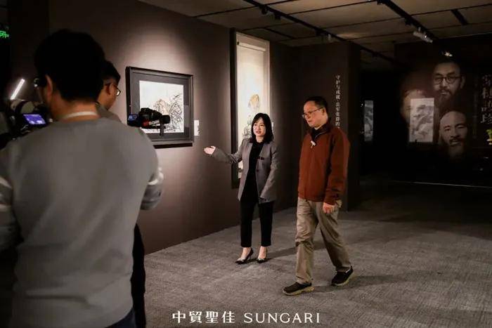 活动伊始,现场导览环节率先开启。策展人、中贸圣佳近现代书画部总经理王琛与著名学者、张大千纪念馆首任馆长汪毅先生,带领线上线下观众步入展厅,详解本次特展“启蒙与铸魂”“传承与回响”“开拓与协力”“守护与成就”四大单元的重点展品。