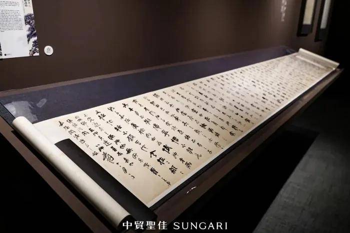 展览现场,一封长达2.7米的家书,是目前所见最长的张大千家书,满含对亲人的思念与归乡的期盼。它正是张大千与侄女张心素(张善孖之长女)的通信,这些信件与张大千绘赠张心素的作品,也是展览中最催人泪下的部分。
