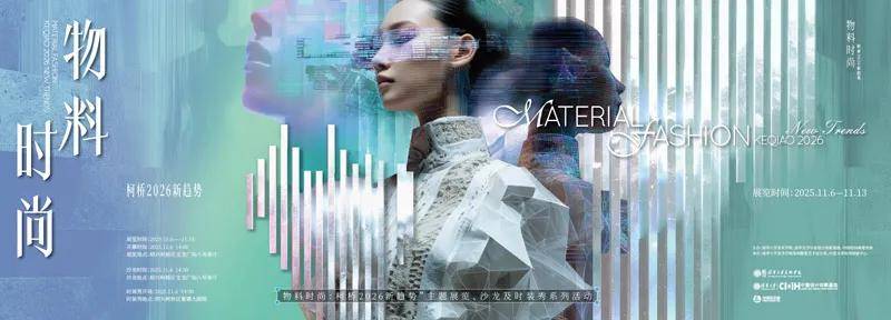11月6日,在2025柯桥时尚周(秋季)期间,“物料时尚:柯桥2026新趋势”主题展览、沙龙及时装秀举办。“物料时尚”系列活动是基于清华大学与柯桥轻纺城建管委多年合作,以柯桥面料为核心材料,展开的系统性研讨与创新实践。活动由清华大学美术学院、清华大学中意设计创新基地与中国轻纺城建设管理委员会联合主办,清华大学美术学院染织服装艺术设计系、中意未来时尚创新中心承办。