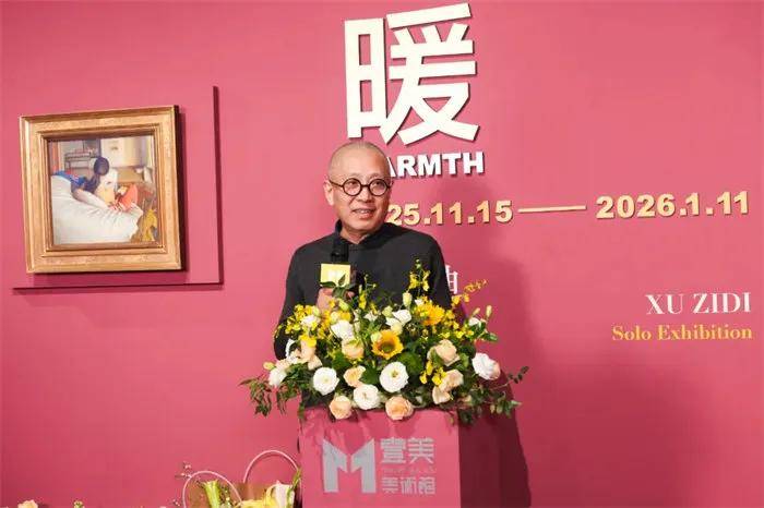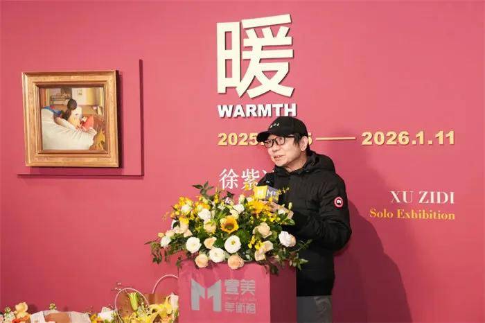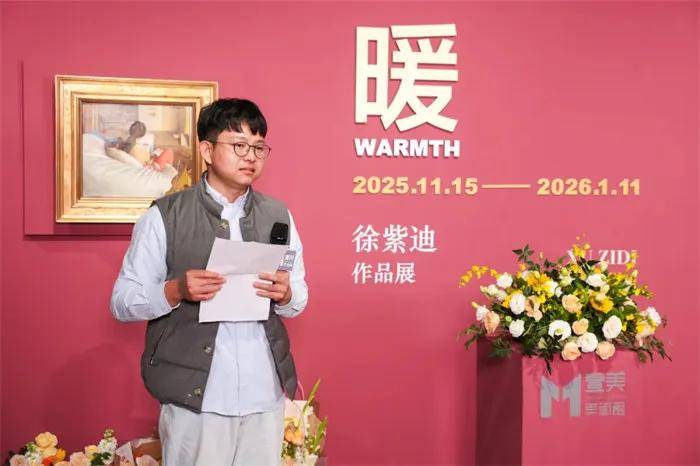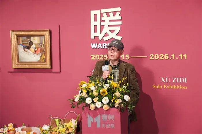 展览策展人 程辰先生致辞,他祝贺艺术家徐紫迪,并感谢到场的师长与嘉宾。此次展览与一层科技艺术展“无尽的重启”形成鲜明对照:一侧深耕写实与古典,围绕日常生活长期创作;一侧面向技术与算法,探索艺术与科技的交汇。徐紫迪的珍贵在于二十年如一日、在同一口井持续深凿,他选择最日常的题材,传递稳定而温热的情感,这也是“暖”的底色。本次壹美美术馆双展并置,鲜明呈现出当代青年在艺术理解、判断与选择上的多样路径。壹美美术馆坐落于海淀,多年来在政府、企业和艺术界的共同支持和帮助下,持续推动艺术与科技的在地共振。未来,壹美美术馆也将持续为青年艺术家和科技工作者提供合作与交流的平台。最后,他祝愿徐紫迪的“暖”继续延伸。