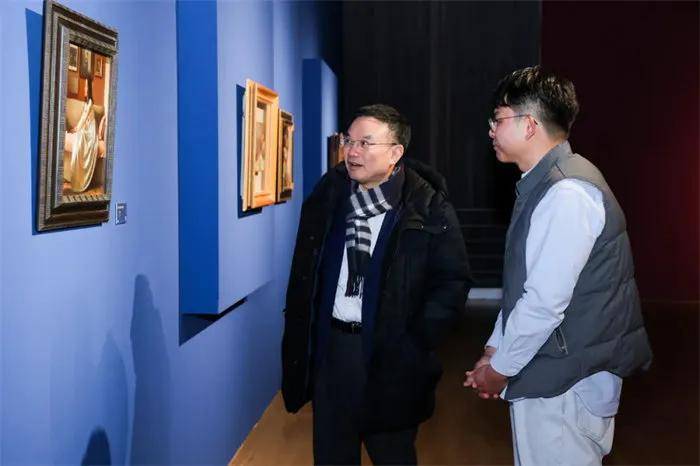 中国人民大学艺术学院教授 刘明才先生致辞。他指出,在AI高度介入的时代,写实绘画面对巨大挑战,徐紫迪仍以严谨观察与自我道路回应当下,尤显珍贵。他认为每件作品都有独特“性格”,关键在于艺术家的内观与真实表达。徐紫迪的创作呈现严密的视觉逻辑与研究性,与他长期开展的维米尔研究互为支撑,路径清晰、愈加深入。最后,他寄语徐紫迪保持内观,让“心流”引路,在艺术与人生中持续前行。