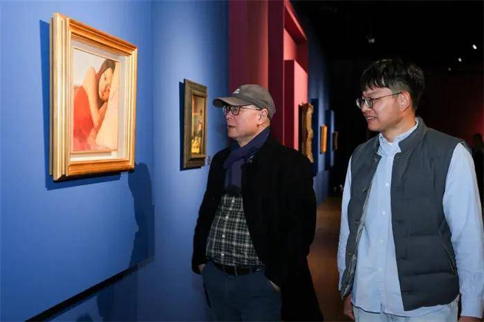 艺术史专家学者 尹吉男先生致辞。他谈到本次展览“暖”的有趣之处,徐紫迪与其妻胡译文皆来自东北,当地的冷与作品中的暖意形成对比。尹吉男强调,徐紫迪对家人“不厌其烦”地描绘,与上一代将家人当“模特”不同,他画真正的家人、真实生活,延续新生代的自传性书写,不去虚构远方与古人,而是紧贴当下与身边。他的作品没有挑剔与批评的眼光,更多的是欣赏和赞美,这些画的气质单纯、质朴、纯真,画如其人,值得珍惜。
