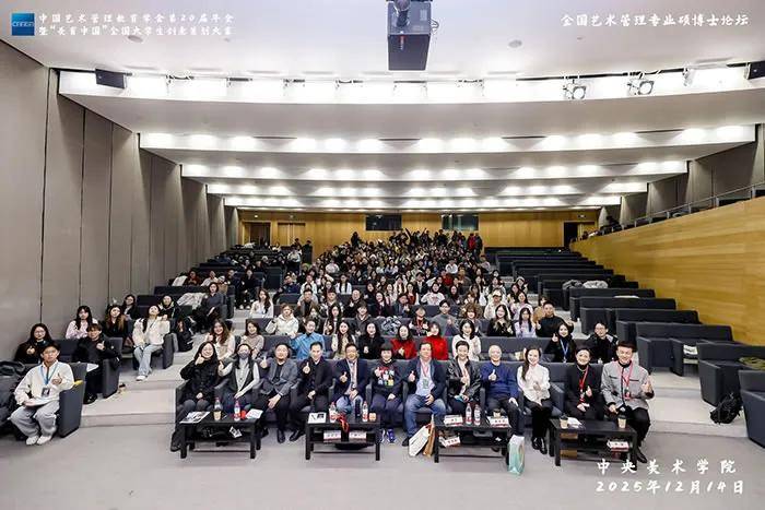 2025年12月13日至14日,中国艺术管理教育学会第20届年会在京召开。本次年会由中国艺术管理教育学会主办,中央美术学院艺术管理与教育学院、中央戏剧学院实验剧团、北京舞蹈学院人文学院、 中国人民大学艺术学院、广州美术学院艺术与人文学院等多院校联合承办。年会由13日在北京观唐国际艺术区举办的全国艺术管理专业硕博士论坛、全国大学生创意策划大赛与14日在中央美术学院举办的主旨发言、圆桌论坛及颁奖典礼构成,汇聚全国八十余所院校的专家学者、业界代表及青年学子,围绕“美育赋能、跨界融合、科技创新”等议题,共同探讨了中国式现代化背景下艺术管理教育的使命与未来。