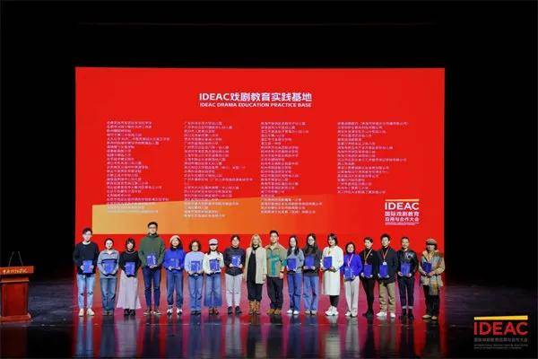 国际木偶戏联盟副主席卡里亚德女士;国际儿童及青少年戏剧联盟前秘书长和荣誉成员伊维萨·西米奇先生;中华社会文化发展基金会党支部书记张国斌先生;中国教育学会美育研究会理事长袁为民女士、IDEAC国际戏剧教育应用与合作大会副秘书长王丽英女士、IDEAC国际戏剧教育应用与合作大会副秘书长苏毅先生,共同为“IDEAC戏剧教育实践基地”代表颁发证书。