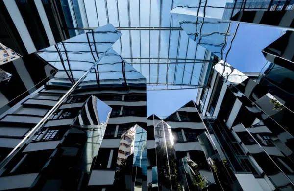 PMQ元创方的地面广场,一个占地25㎡的镜面矩阵《阡陌》正静静伫立。十多根L形镜柱以特定角度排列,反射着天空、周围的建筑以及川流不息的参观者。这件作品是在回应今年“deTour 设计节”主题“想望之器”,它并非传统意义上的迷宫,而是一个引发关于城市生活、人际关系与自我认知深刻思考的艺术空间。