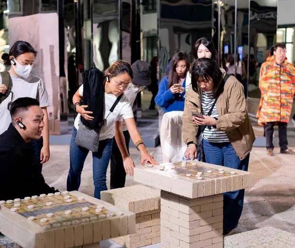 意大利创作团队带来的《A Battle of Beasts》,作品虽来自欧洲,却深深植根于香港的公共记忆之中。设计师从本地公园常见的露天棋局汲取灵感,将市民日常聚集、对弈、交流的生活场景转化为设计语言,透过陶瓷数码印刷技术,将棋盘图案与传统符号印制于砖块上,形成宛如游乐场般的景观,让设计成为一种文化叙事。作品置于展场入口,宛如一个“对话的起点”,以熟悉的公共氛围悄然唤起来访者的集体记忆,吸引人们驻足、互动、对弈。这不仅是一件装置,更是一座连接不同文化、激发即时交流的温情媒介。
