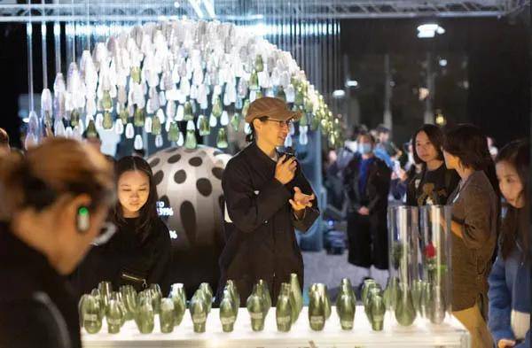 《花·织象》是一个历时两年研发的创新项目,它将参与者的MBTI测试结果,通过独特的设计语言转译,3D打印的花瓶,一件供参与者保留,另一件则成为设计装置的一部分,并逐渐形成直径约2.5米的球体结构,同时搜集参与者提供的测试结果数据,并可以通过新媒体球体呈现出来。“数据本身是冰冷的,但因为融入了MBTI每个人的性格,也就是说,现在我们看到的每一个花瓶,其实都代表着一个人的性格。”