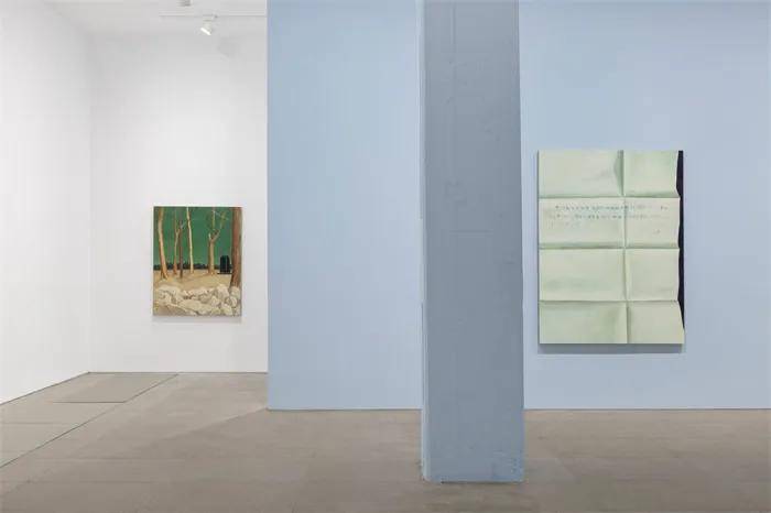 艺术家从个人成长经历中提取图像:旧式车厢、公园雕塑、静止的喷泉、折叠的信纸、悬挂在墙上的衣衫、变色的地图与地球仪、装满书的旅行皮包、斑驳的建筑与反光的窗景。这些带着体温、泛着微光的画面,承载着艺术家成长过程中的喜悦、温暖、沉思、孤独与期待。这种私密的个体经验,如何经由绘画语言,淬炼为我们共同的情感结构?