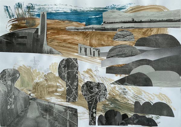 在复合拼贴系列作品中,我们可以看见任天宇如何有意识地与英国艺术家John Piper 的早期风格产生对话。这不仅是技巧上的借鉴,实际而言,是种对于「瞬间感受」的创作觉察方式的认同及重构。