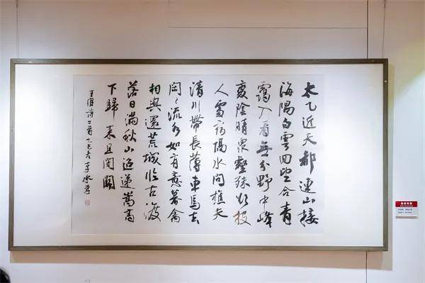本次展出的51幅作品,涵盖多种书体,其楷书作品端严秀整,笔笔有古意,字字见风骨,气象从容端方,深得魏晋名士遗韵。行书创作则体现了“流而不浮,放而不纵”的度。墨色自然流转,线条舒展自如,犹如文人雅士间的清谈,意蕴疏朗而内敛,展现了收放自如的功力。