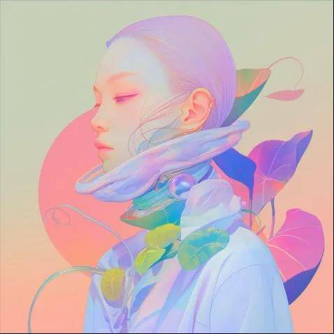 《Space》系列(2023–2025,艺术微喷)则把注意力转向更抽象的生命演化模型。这些形象不完全是可辨识的人类形象,也不全是赛博朋克式的机械植入,更像是呈现出一种介于有机与无机之间的中间态。