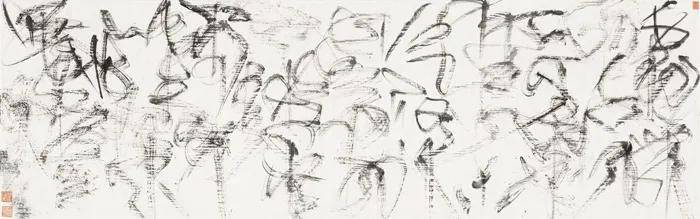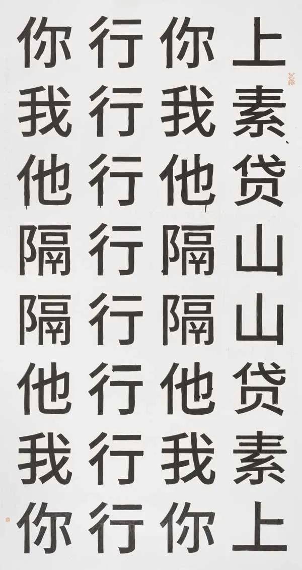 刘彦湖《行行行行》,纸本微喷、水墨书写,212x111cm,2025
