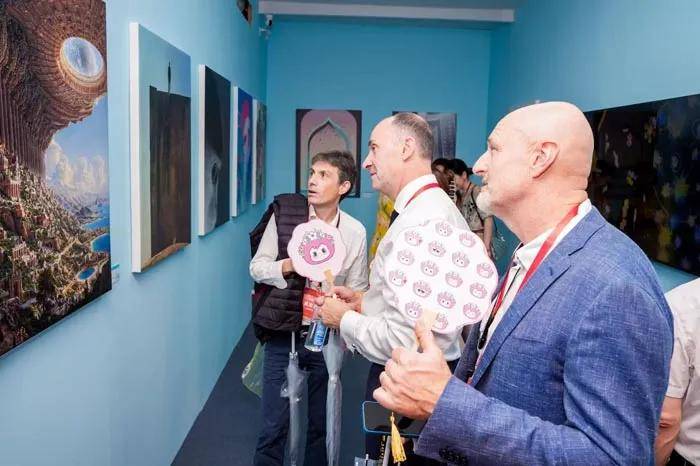 泉州市委常委、宣传部部长、统战部部长刘林霜对到场嘉宾表示诚挚的欢迎。他讲到,AI与艺术的融合为世遗泉州注入新活力,本次展览以人工智能为媒介,将天后宫、开元寺、伊斯兰石刻、木偶戏、南音等泉州文化遗产转化为动态数字作品,生动展现非遗之美与科技温度。他邀请更多艺术家来泉采风,用AI艺术呈现泉州世遗底蕴和“一带一路”发展新图景,并预祝展览圆满成功。